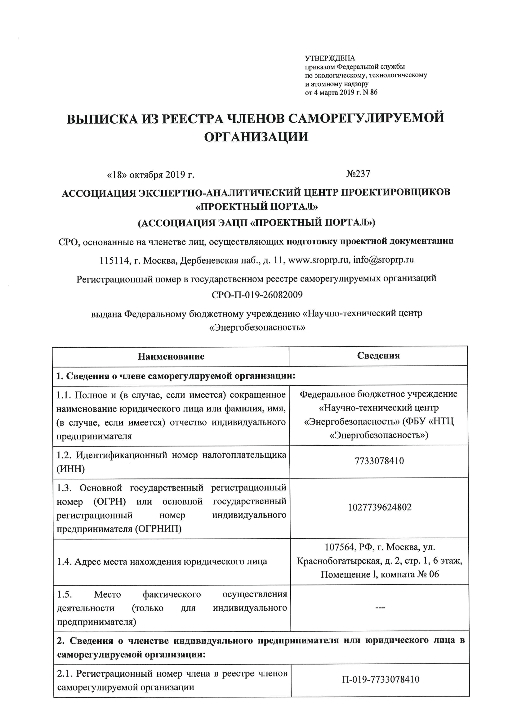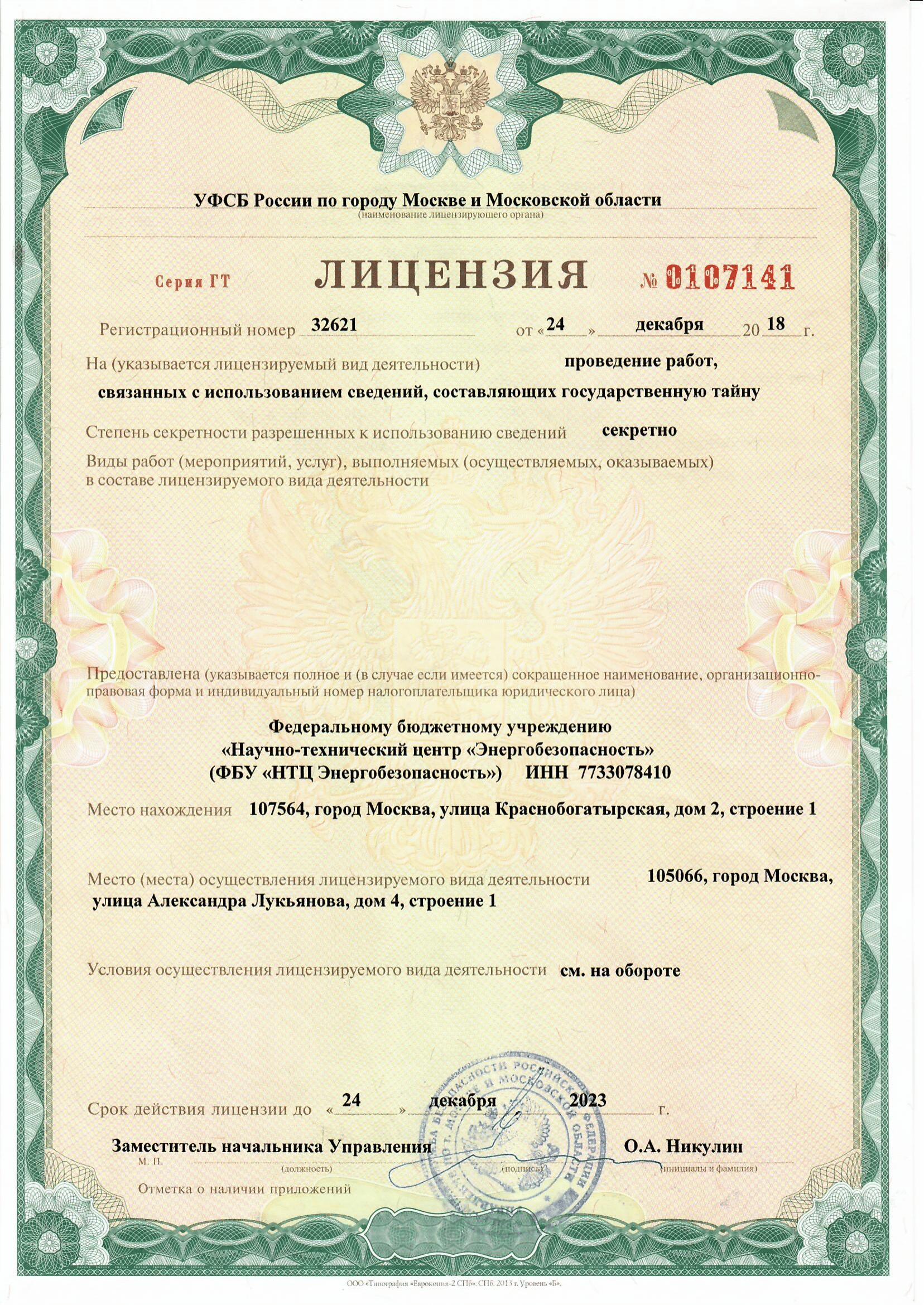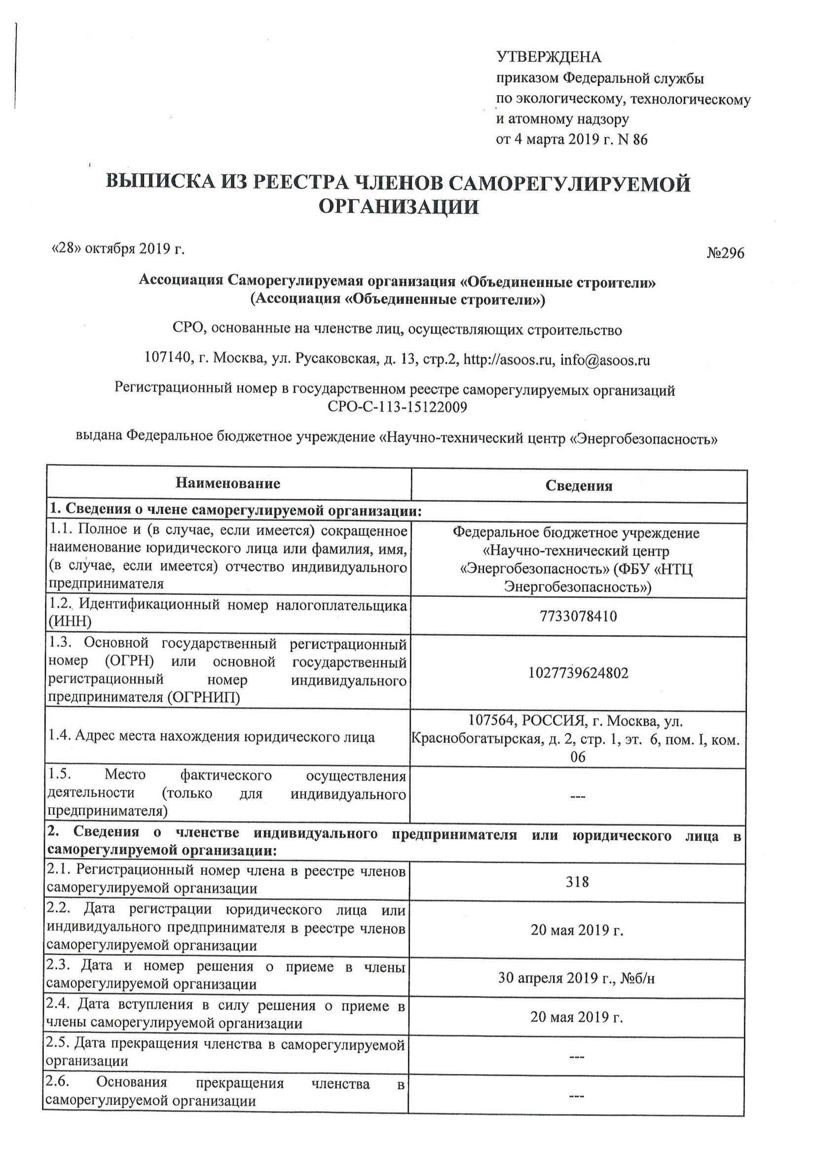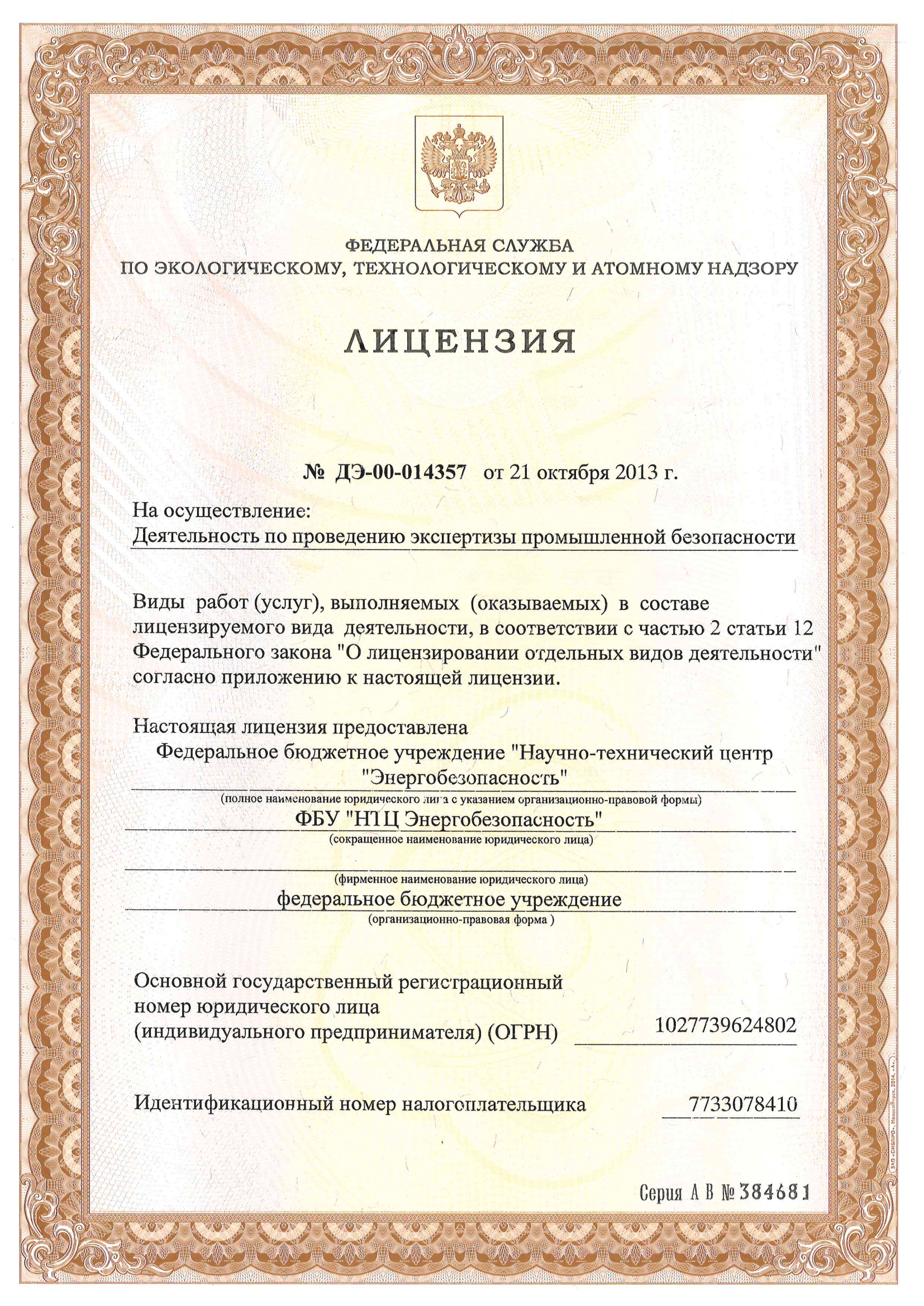 Получатель: УФК по г. Москве (ФБУ «НТЦ Энергобезопасность», л/с 20736U59050)