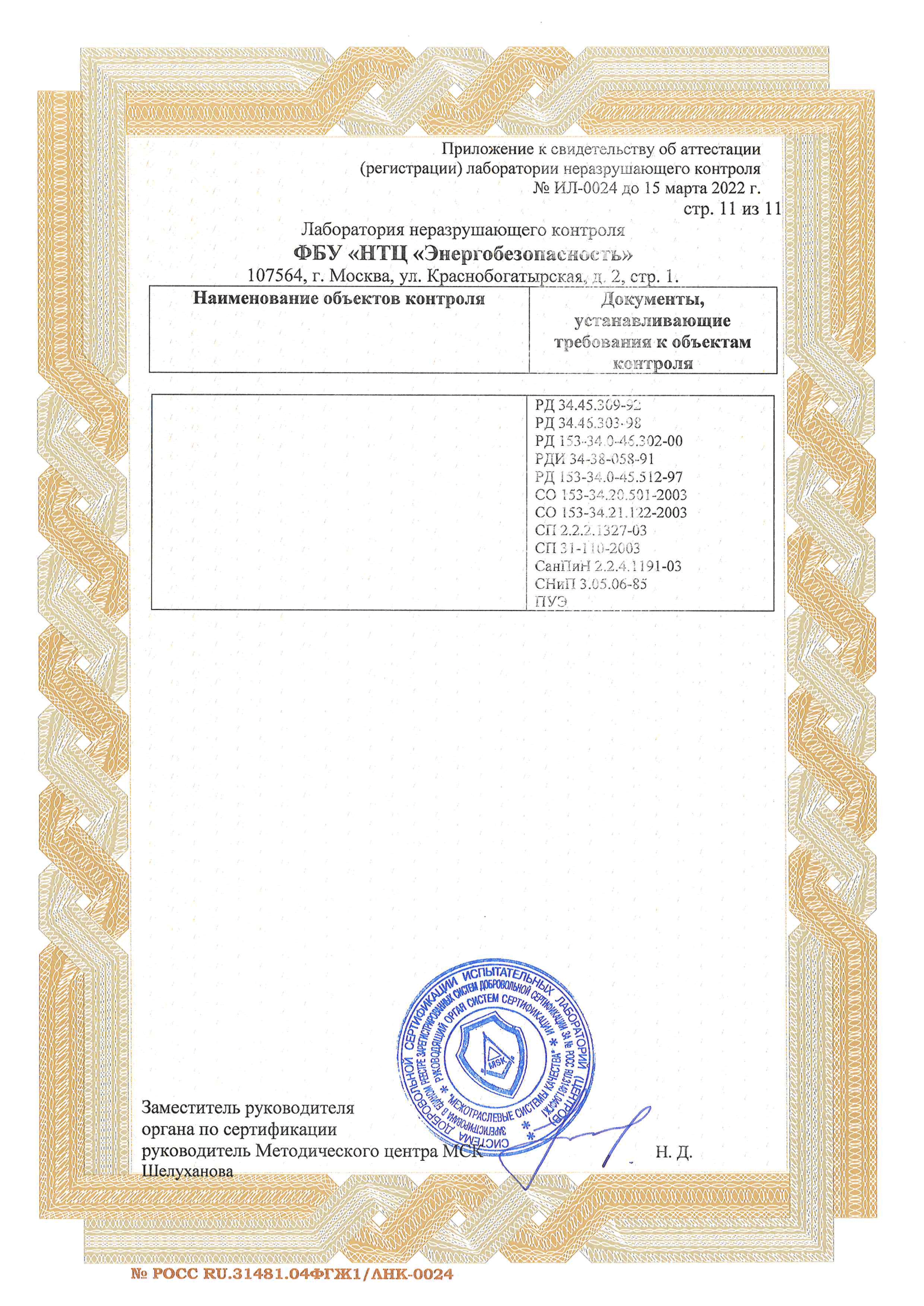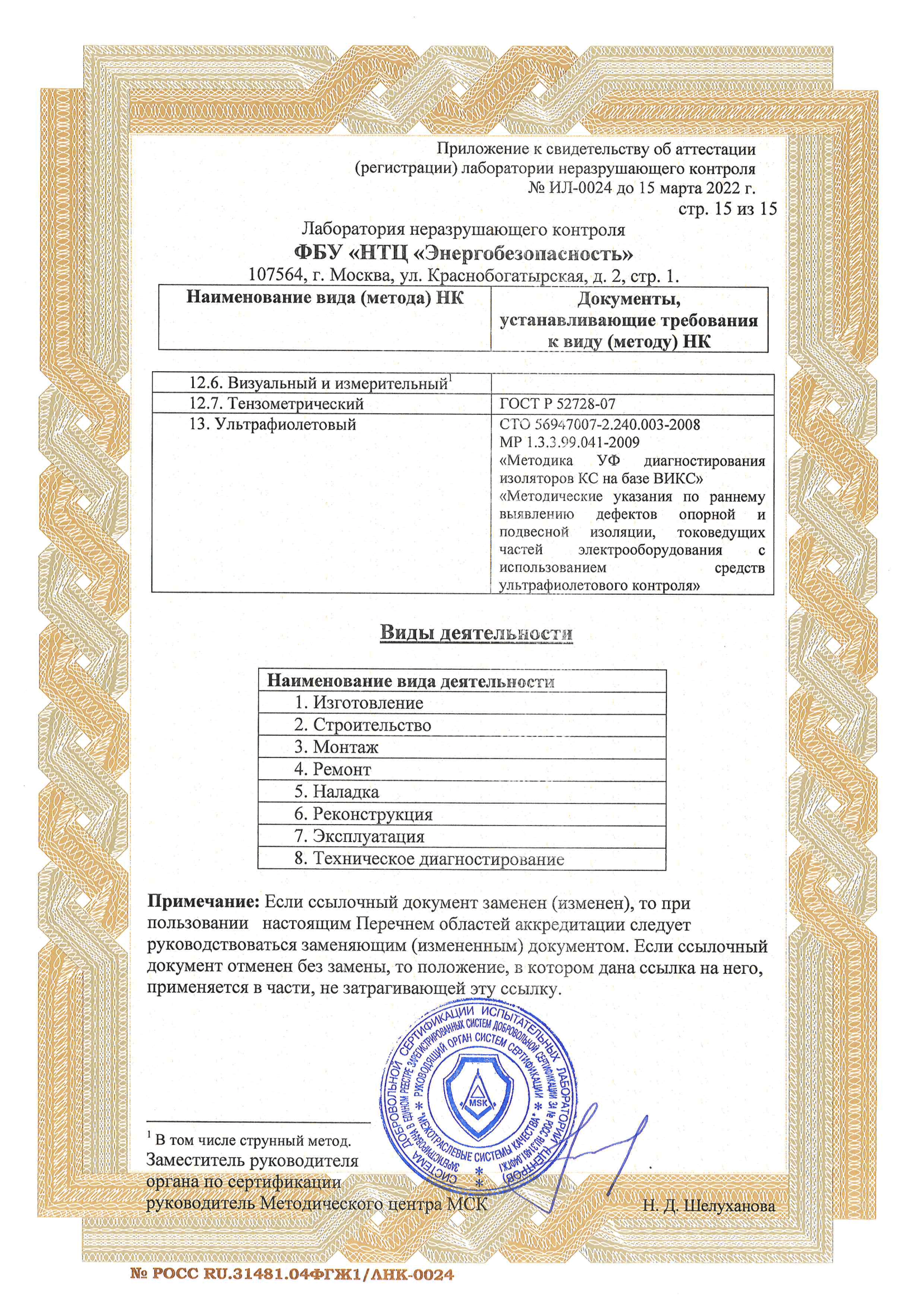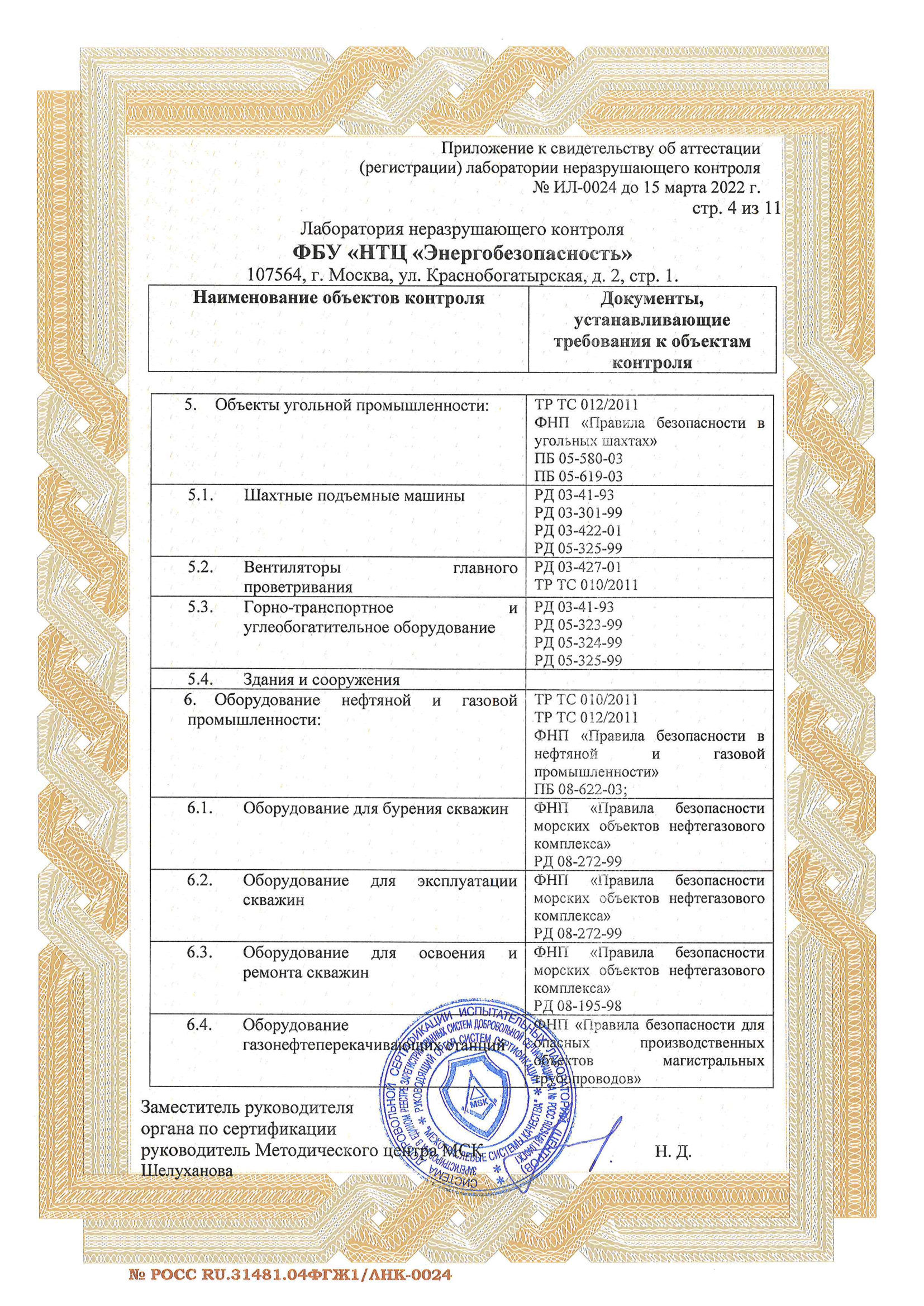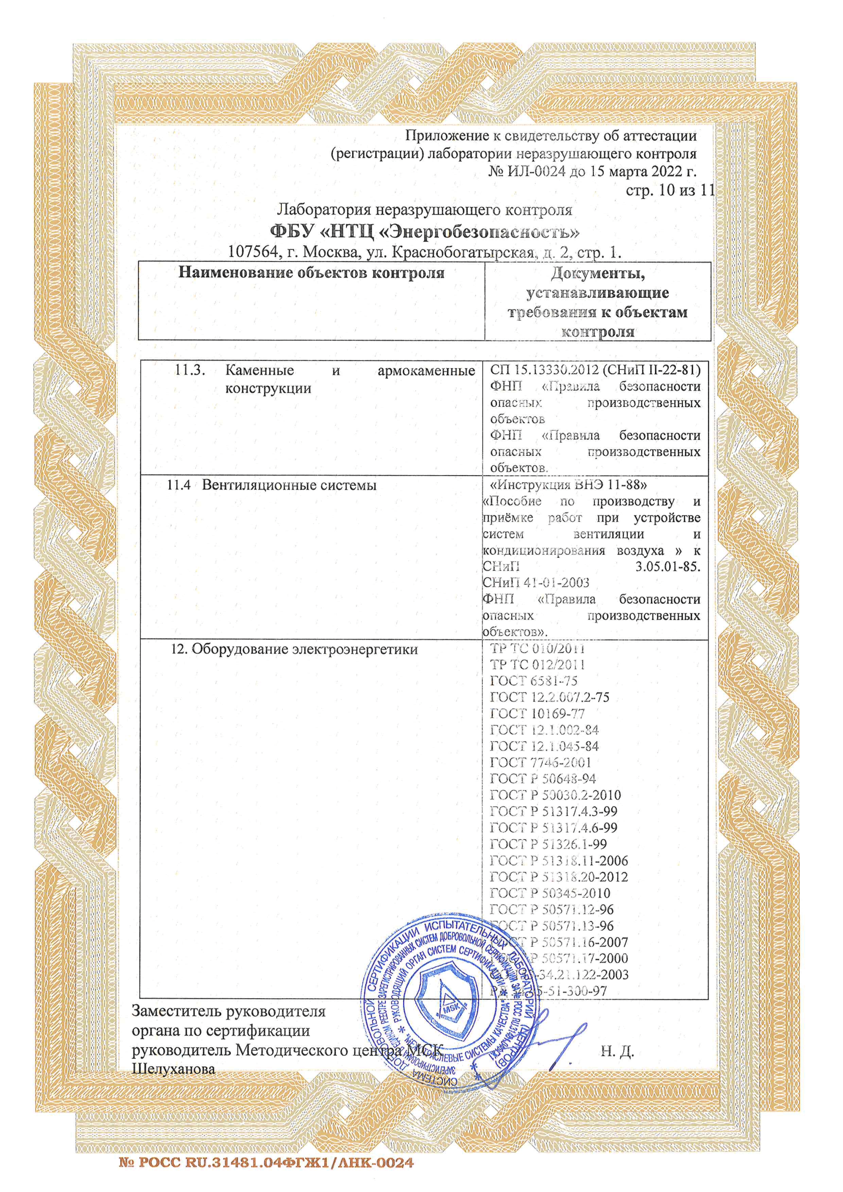 - Технические, лабораторные и прочие измерения для обеспечения контроля и надзора за ГТС, ОПО и объектами электроэнергетики.