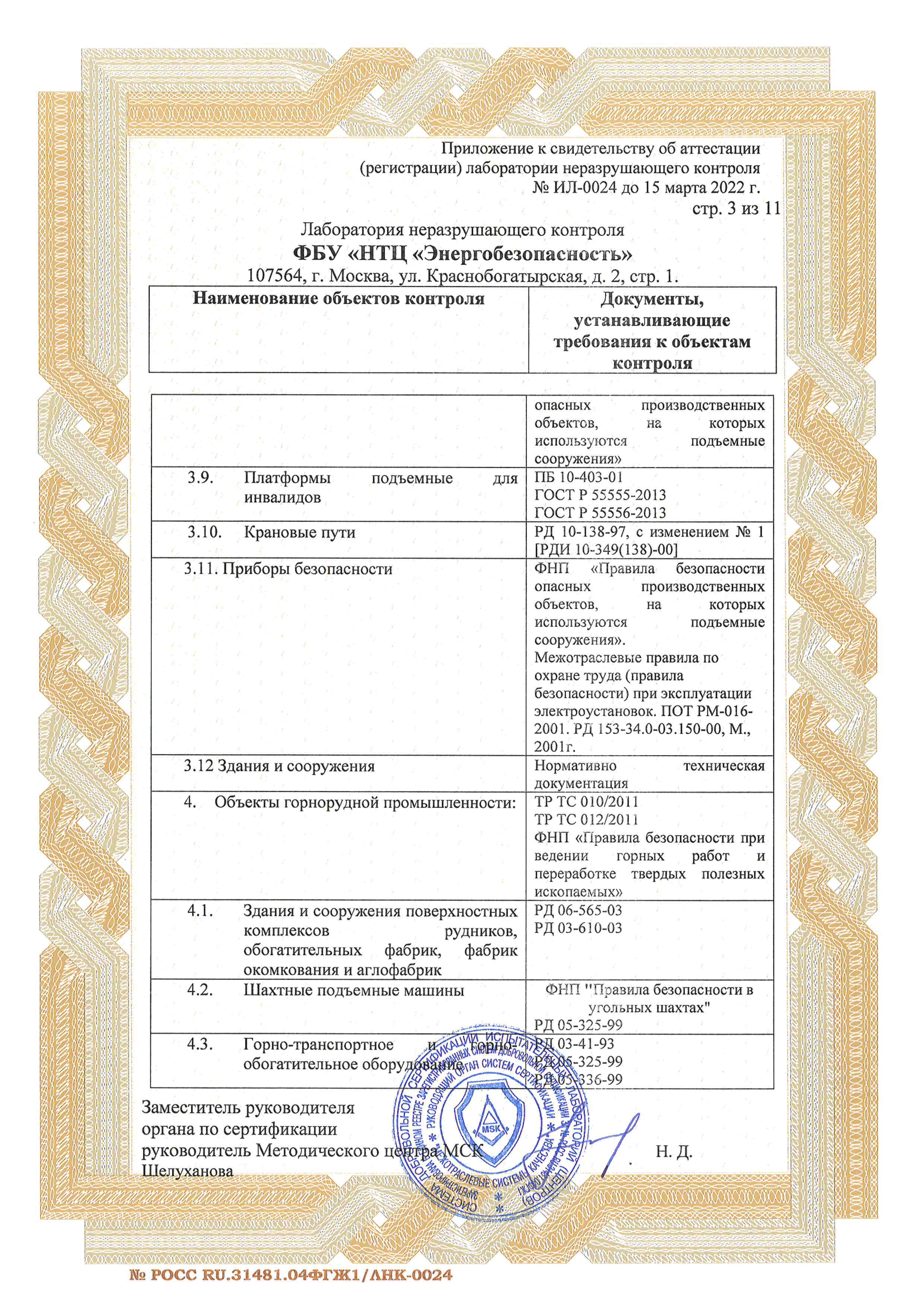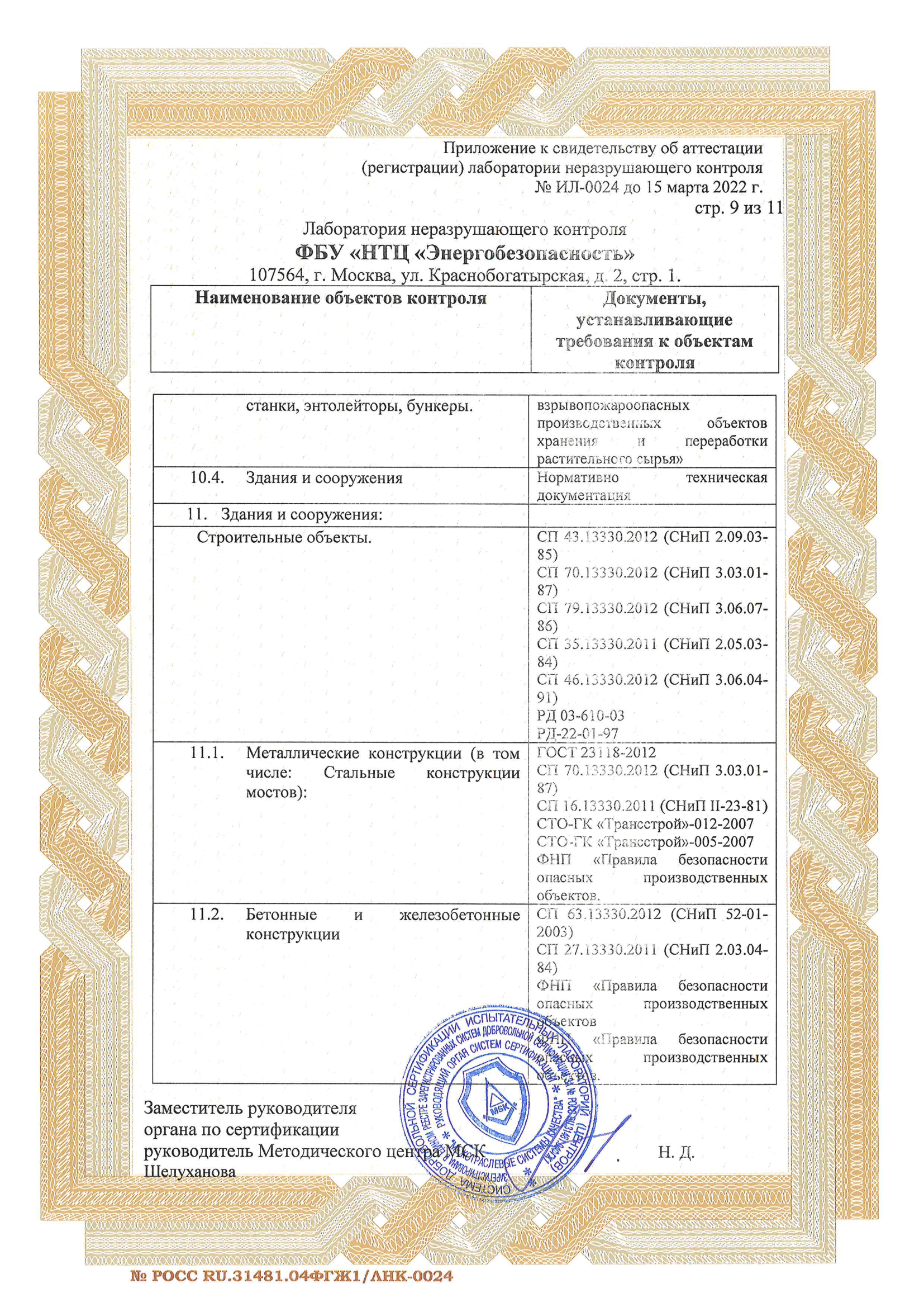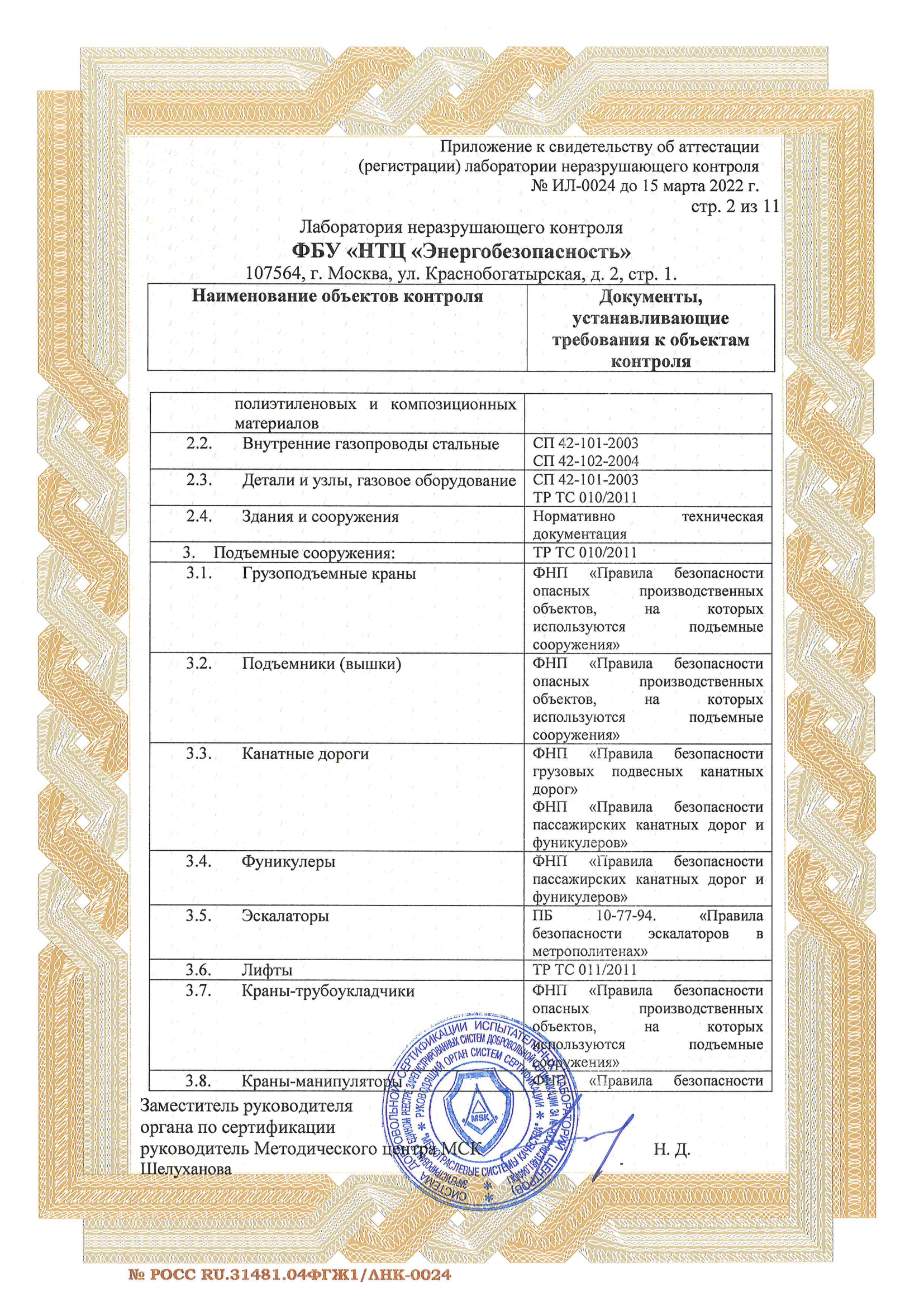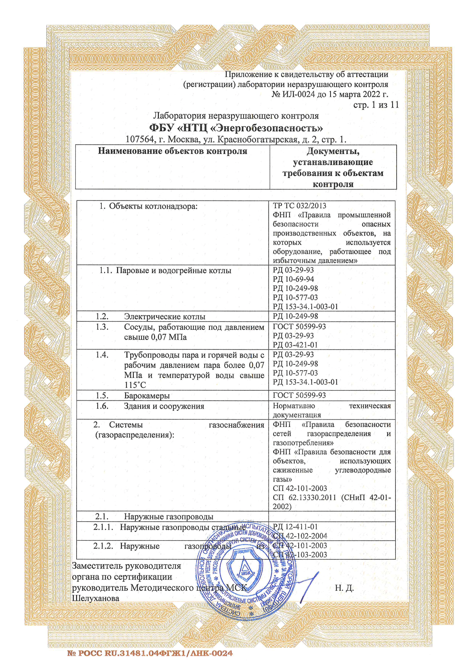 - Технические, лабораторные и прочие измерения для обеспечения контроля и надзора за ГТС, ОПО и объектами электроэнергетики.