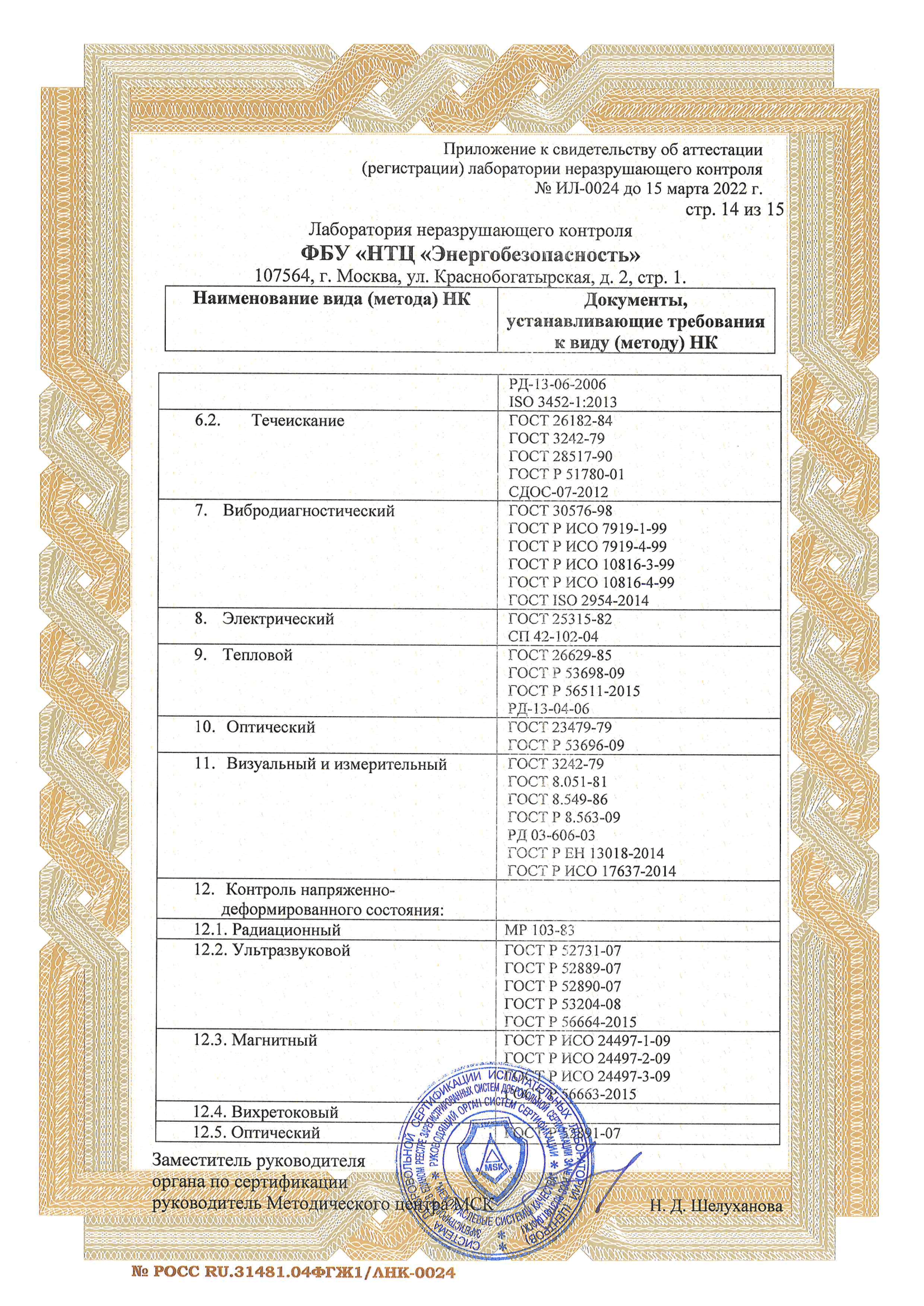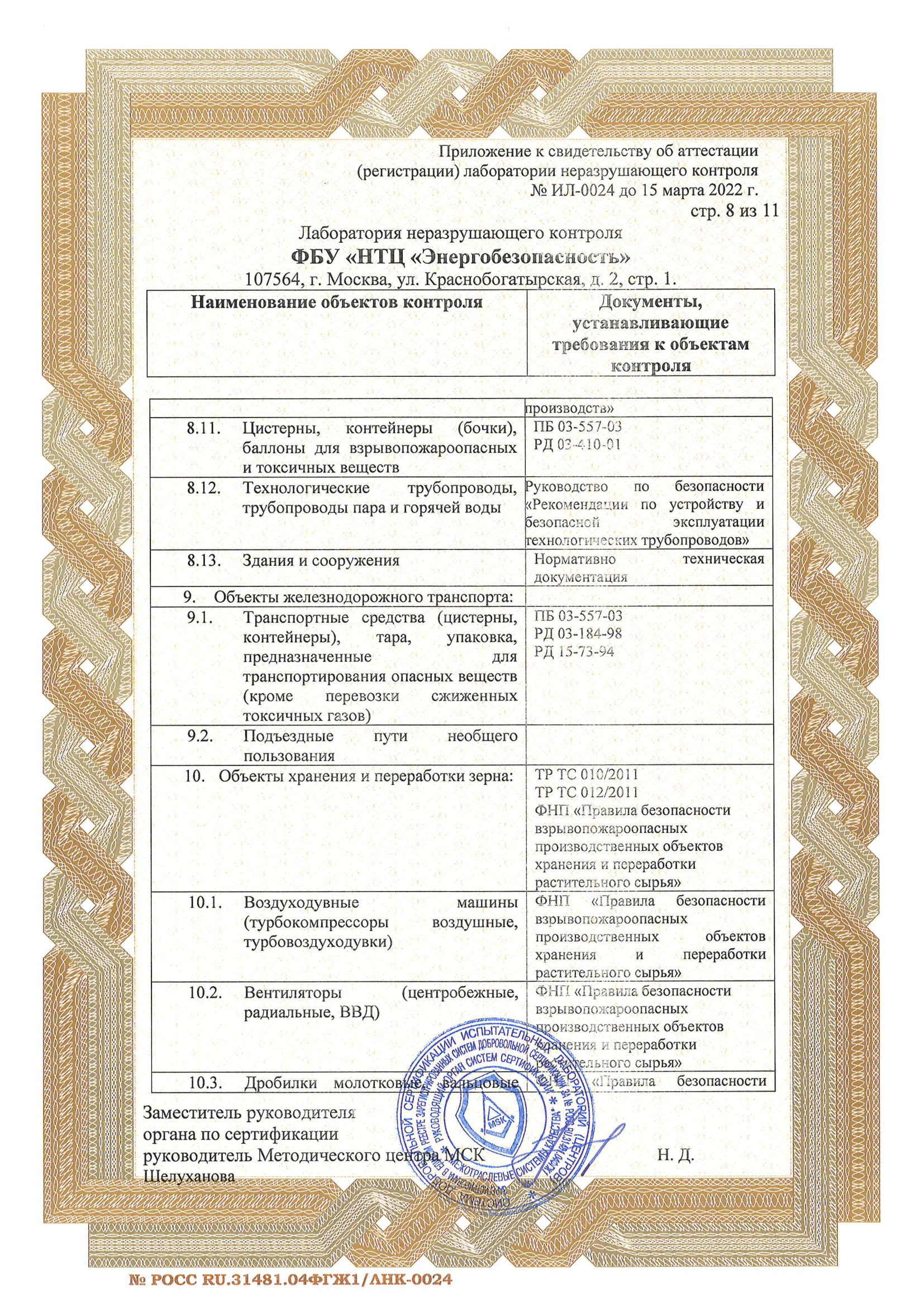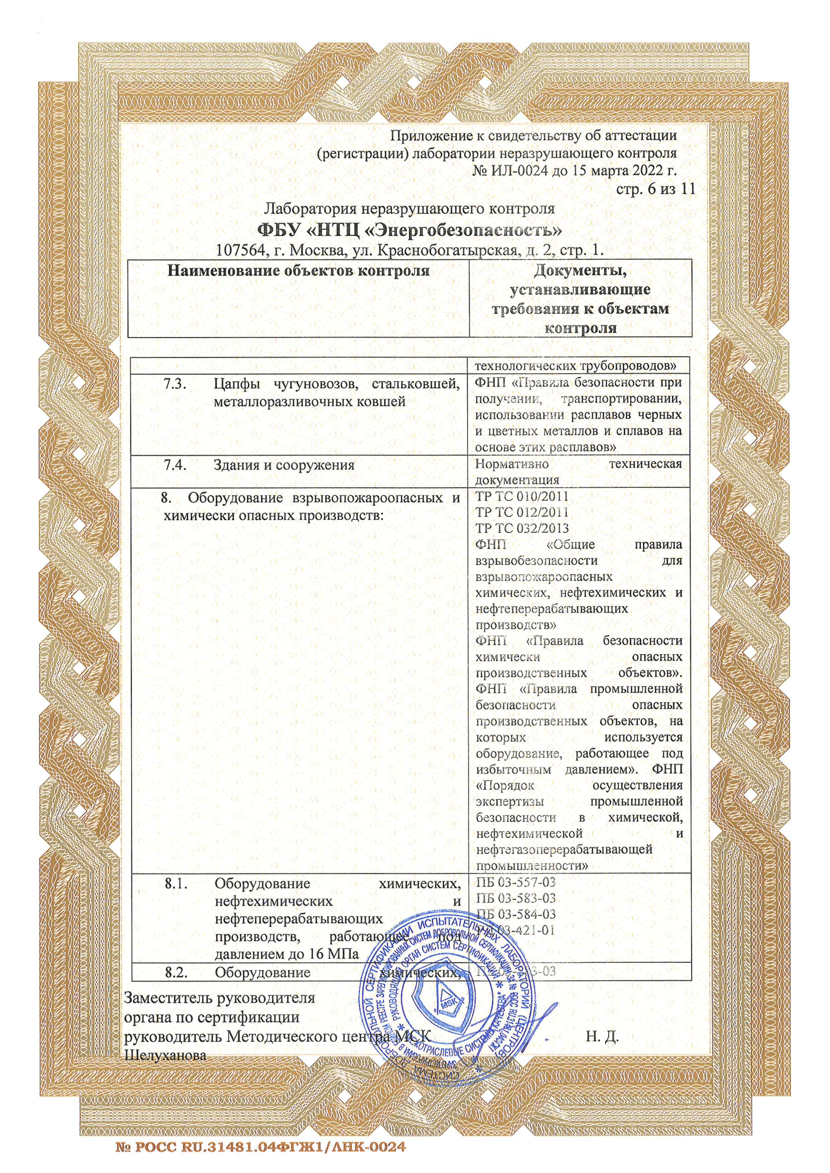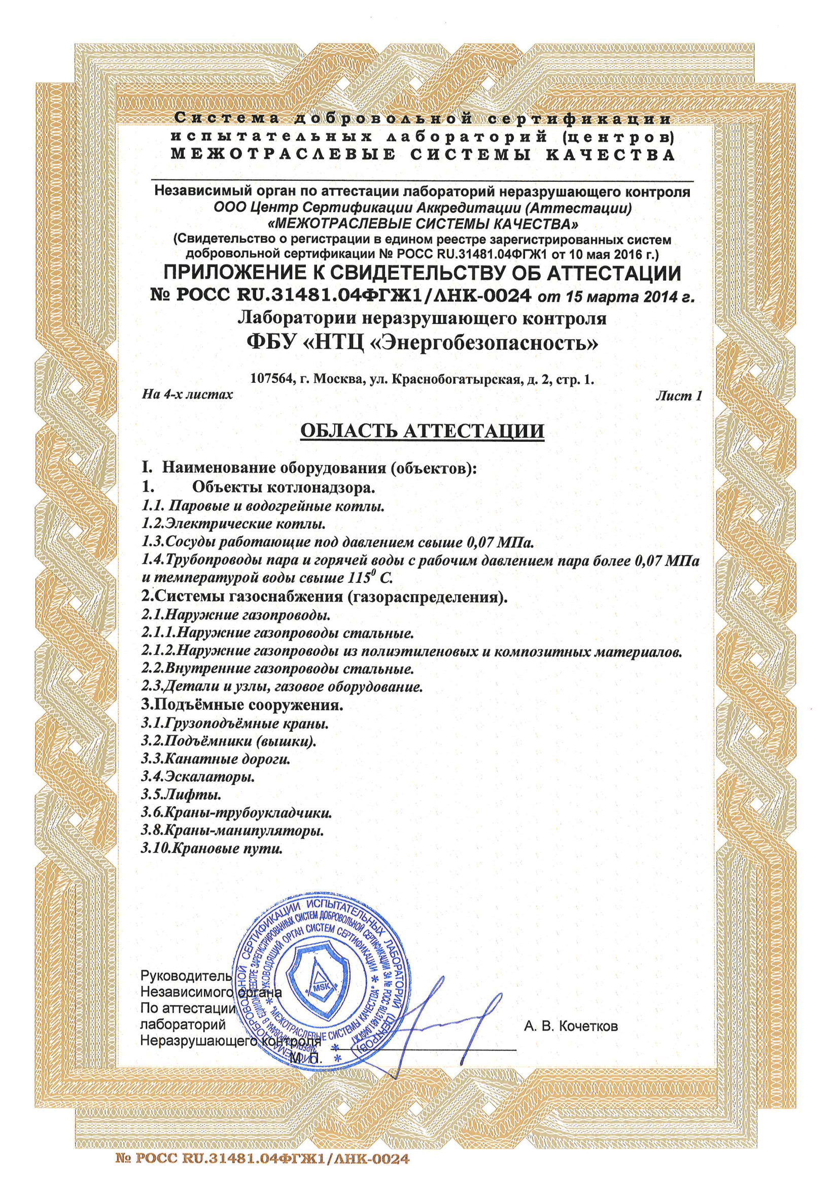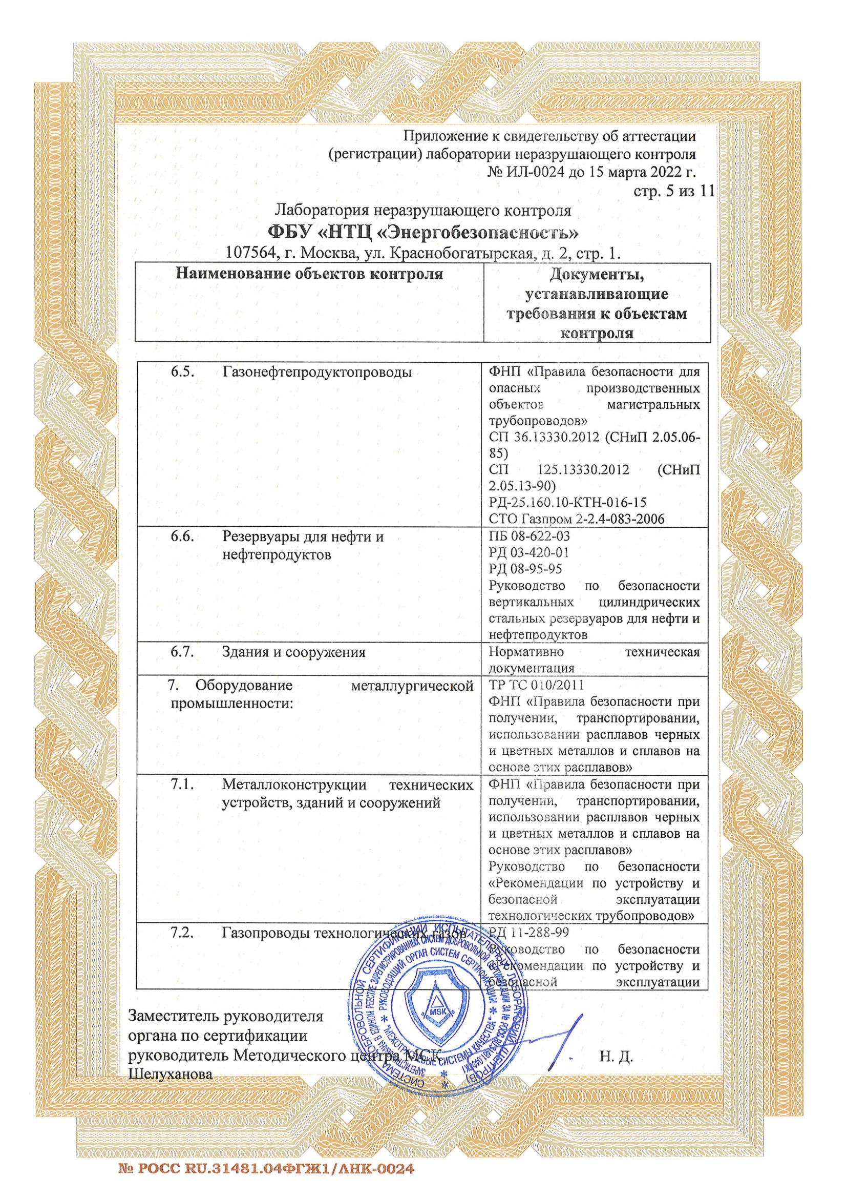 - Технические, лабораторные и прочие измерения для обеспечения контроля и надзора за ГТС, ОПО и объектами электроэнергетики.