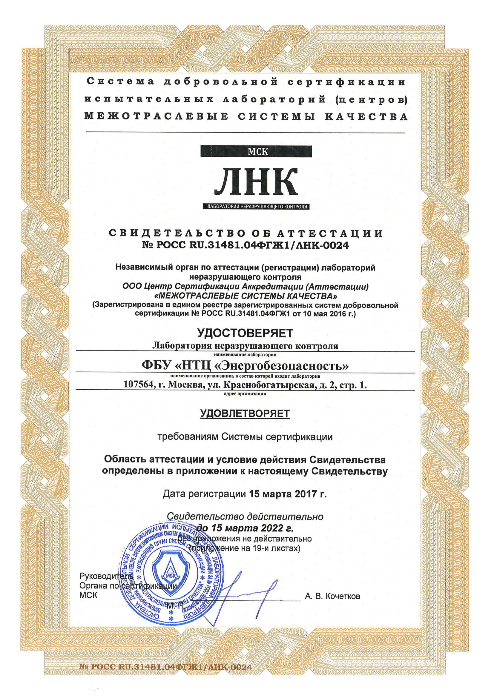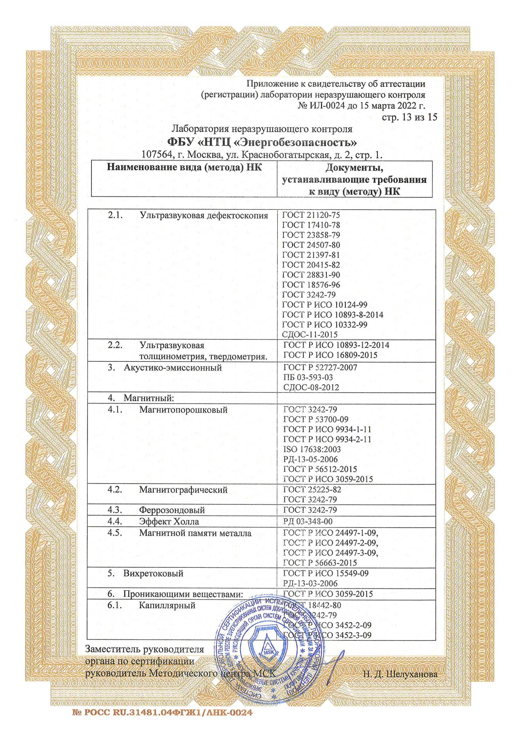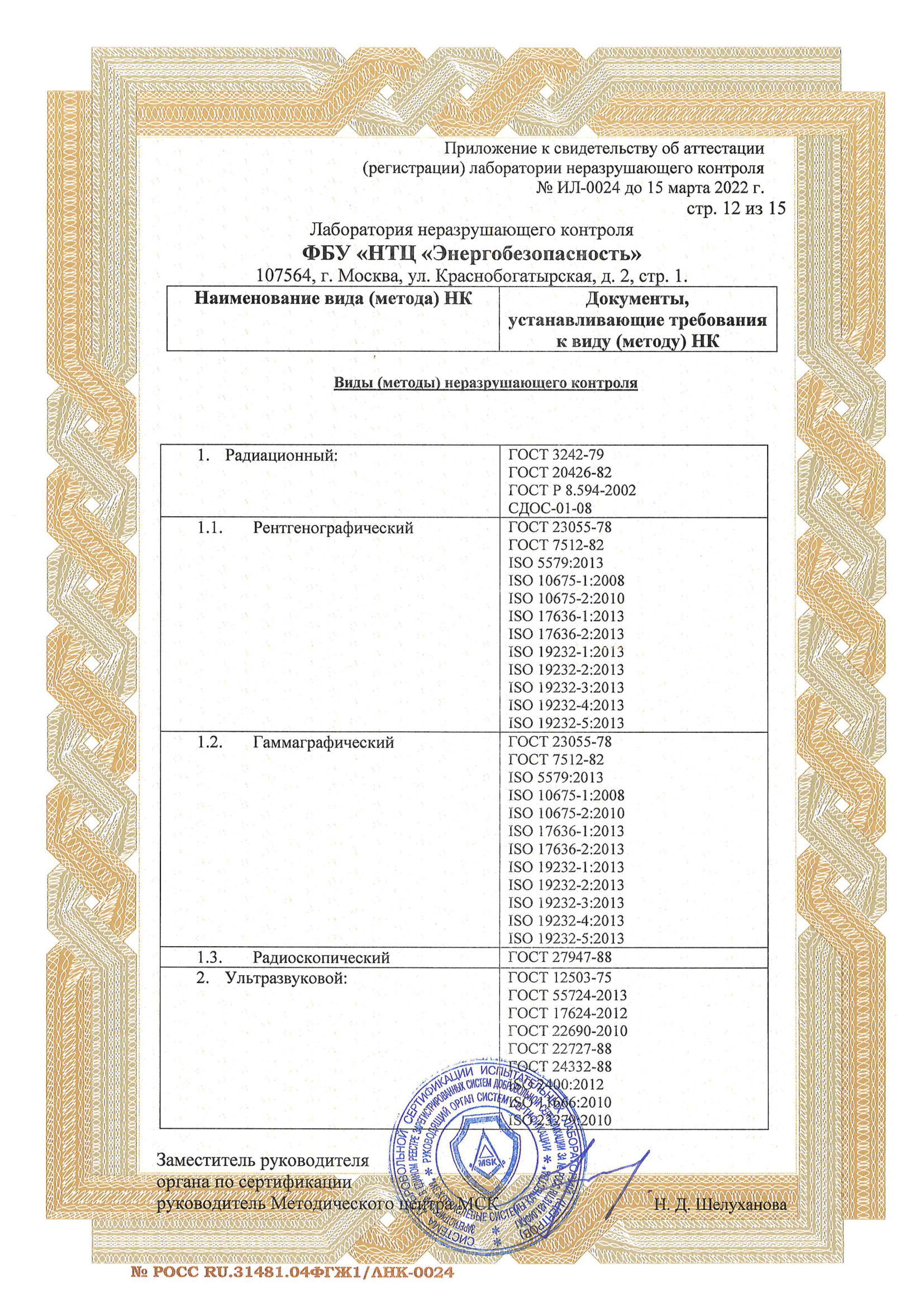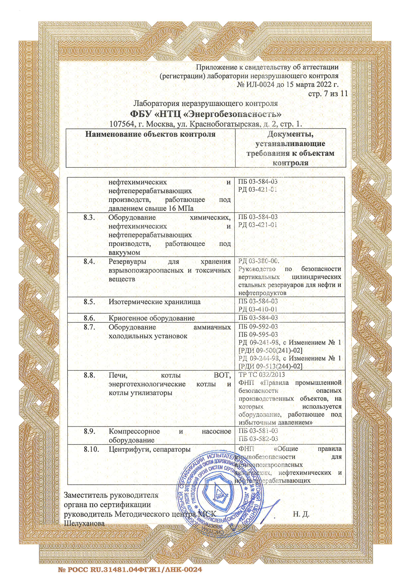 - Технические, лабораторные и прочие измерения для обеспечения контроля и надзора за ГТС, ОПО и объектами электроэнергетики.